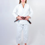The Break Point Academy Women’s White Gi has no seam on the back and is a one piece construction top, and the pants are reinforced in the knee area for maximum durability. It is also 95% pre-shrunk and is available in 7 different sizes to fit a wide array of body types. Belt not included.